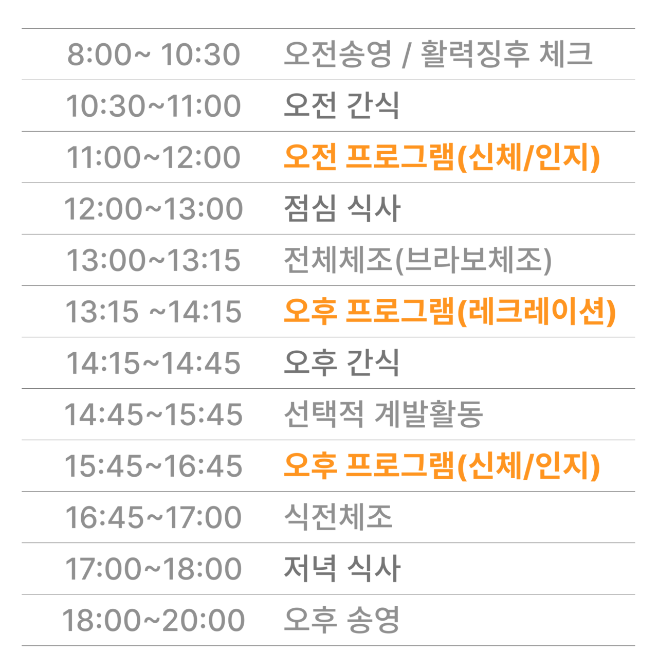 돌봄, 식사, 프로그램을 이용하는
